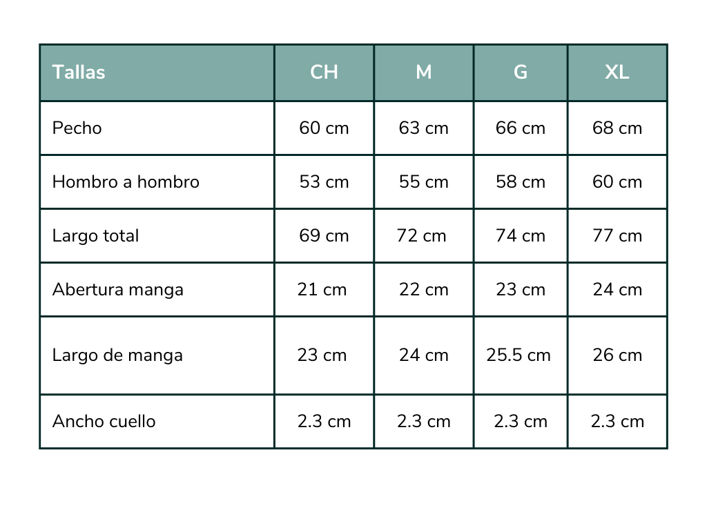 Consulta la tabla específica y asegúrate de elegir el ajuste ideal para ti.